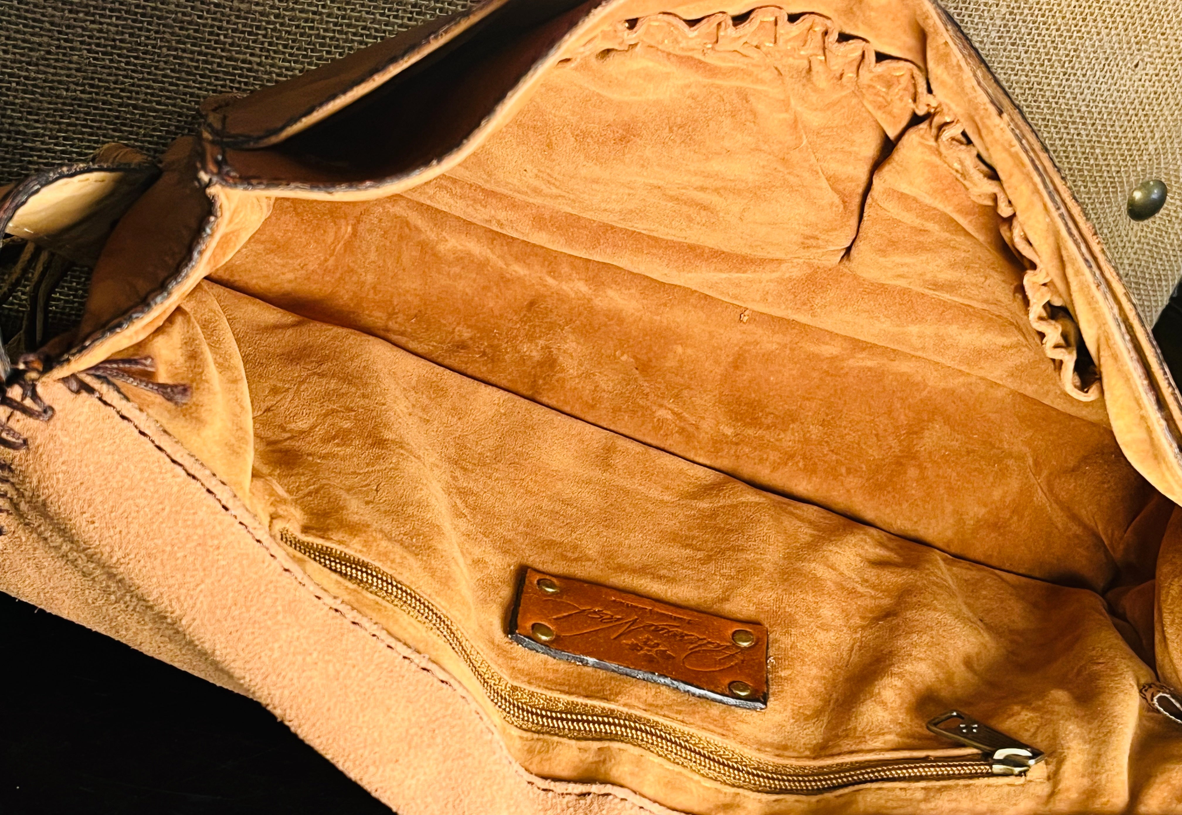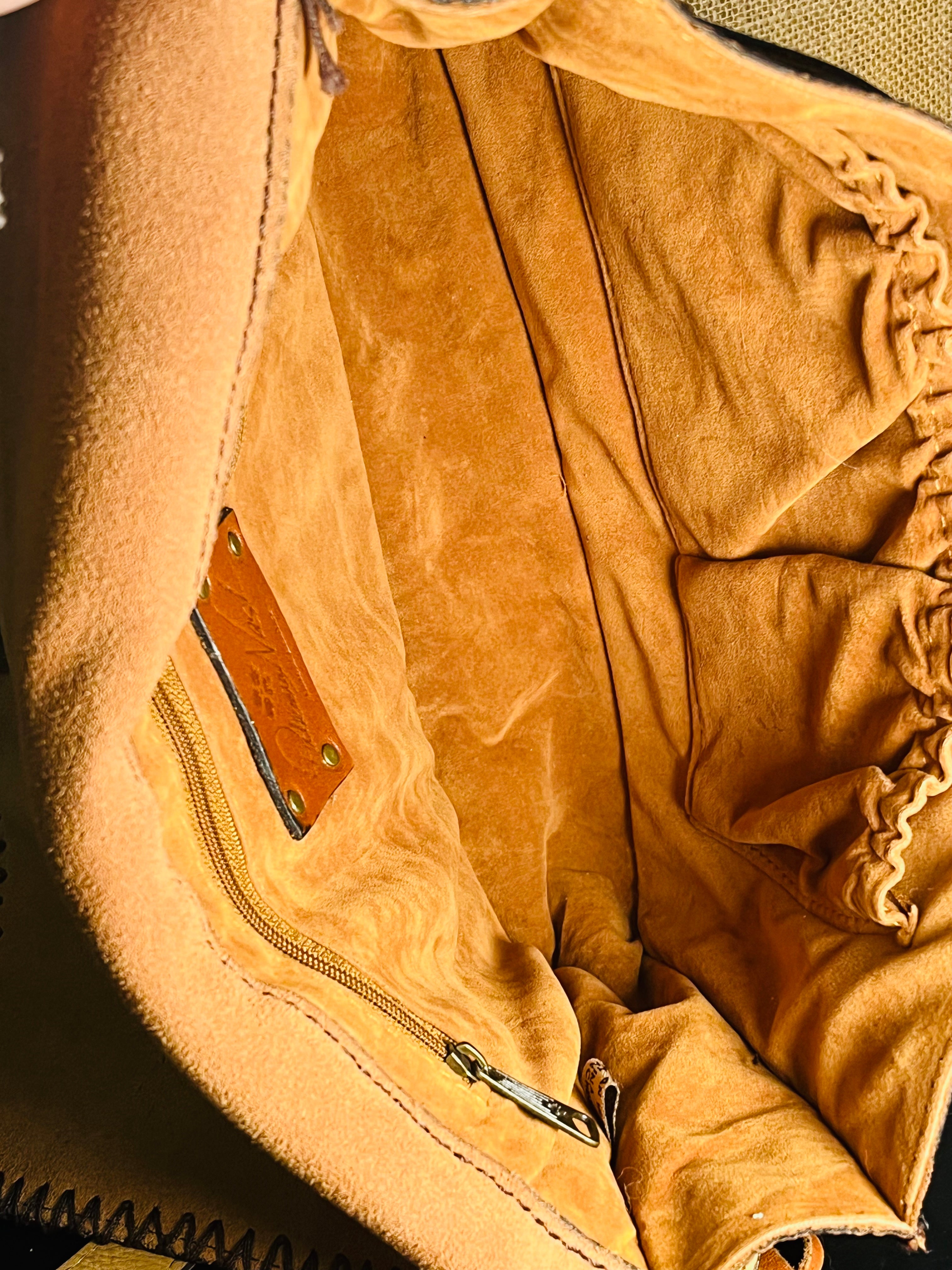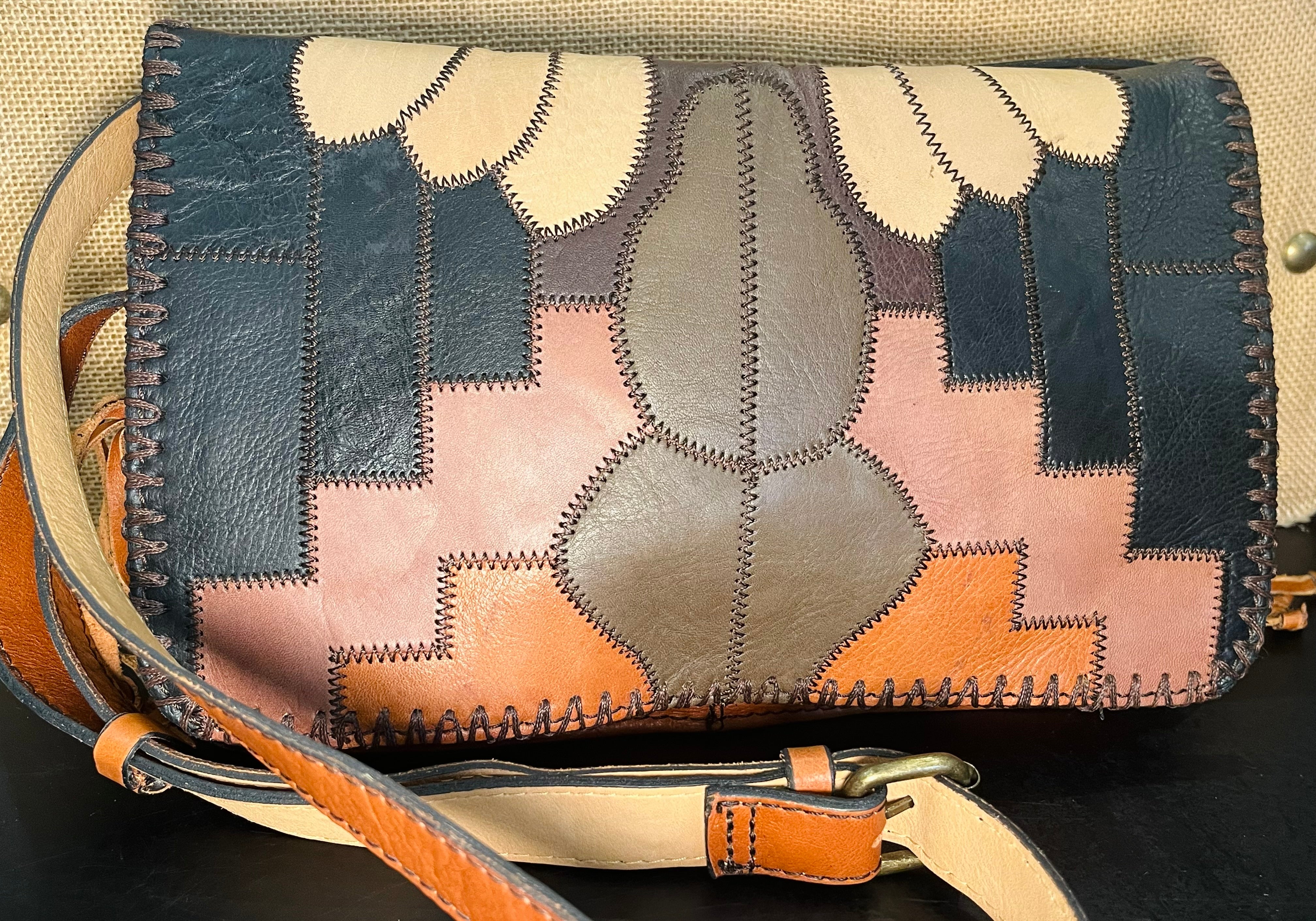 Patricia Nash Zig Zag Patchwork Brown Hobo Crossbody Leather Bag