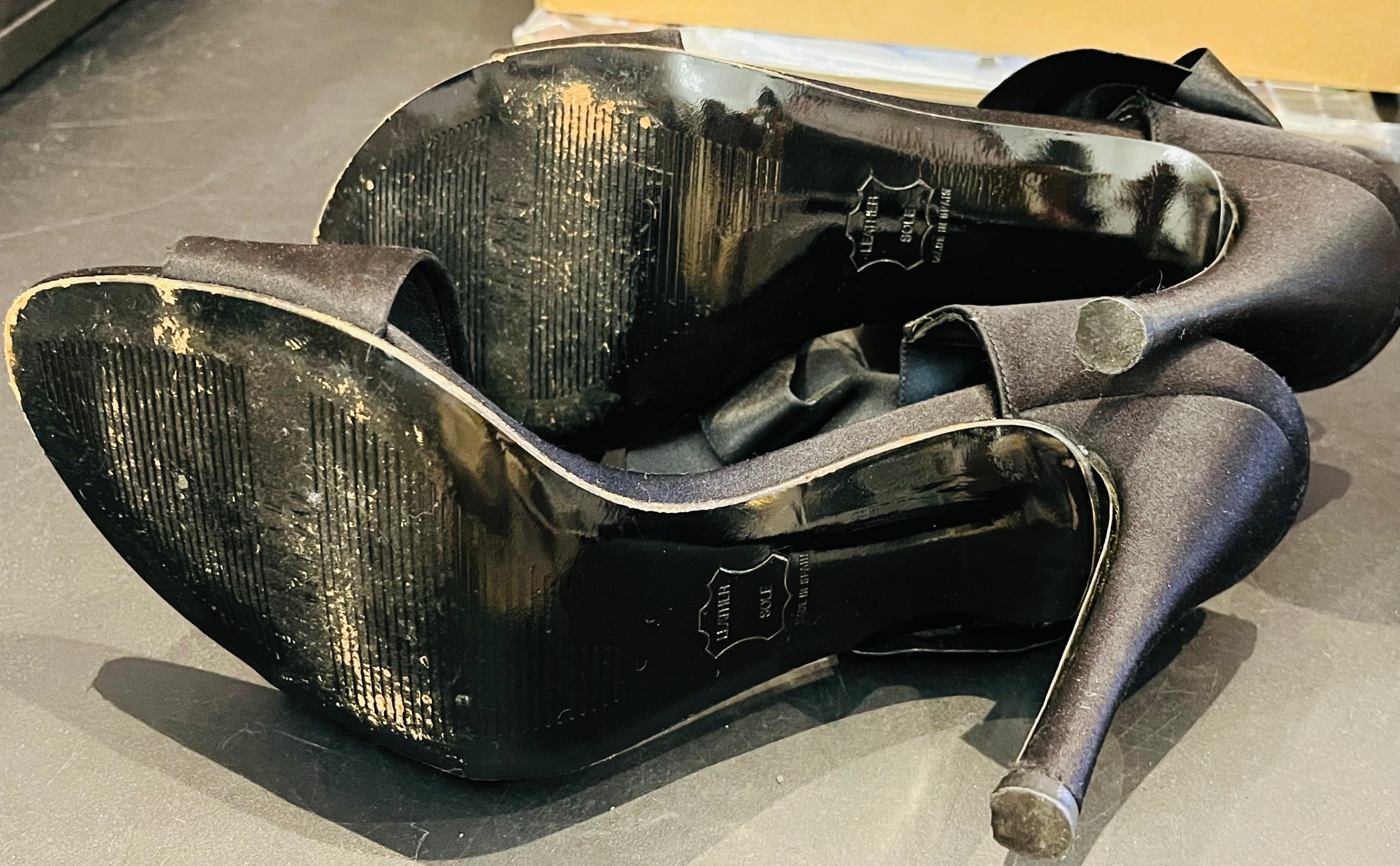 Minor scuffs on soles as shown in pics but no rips, scapes or scuffs on satin portions. Really good condition!