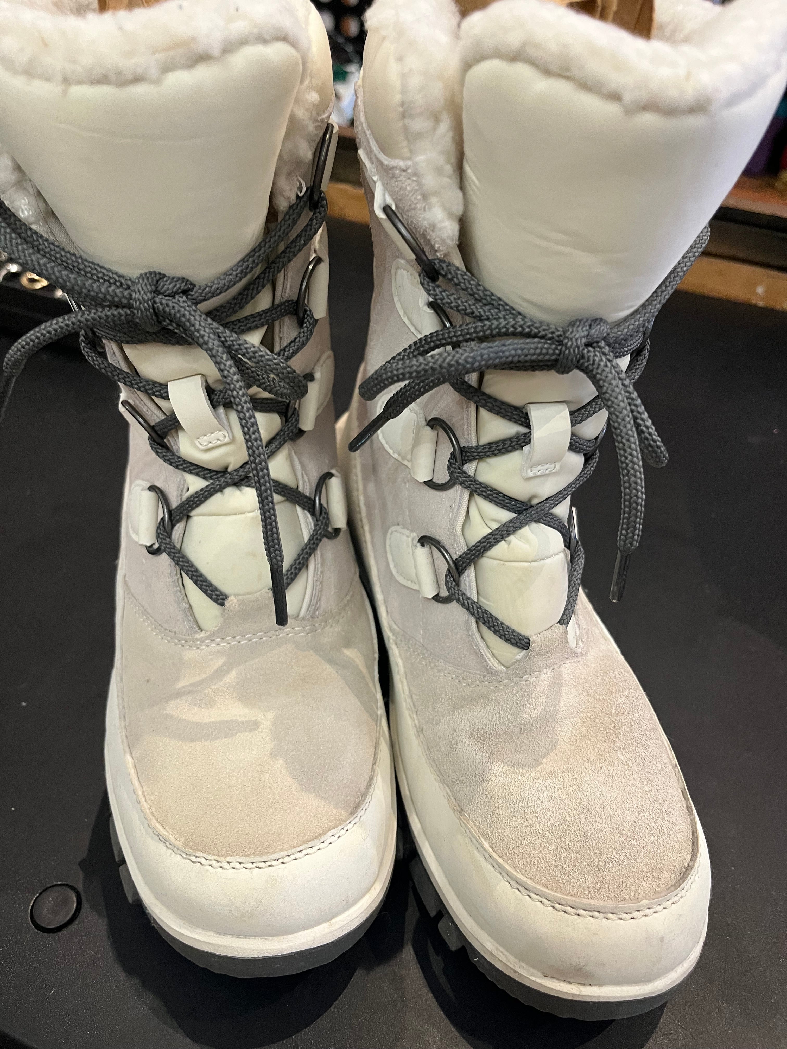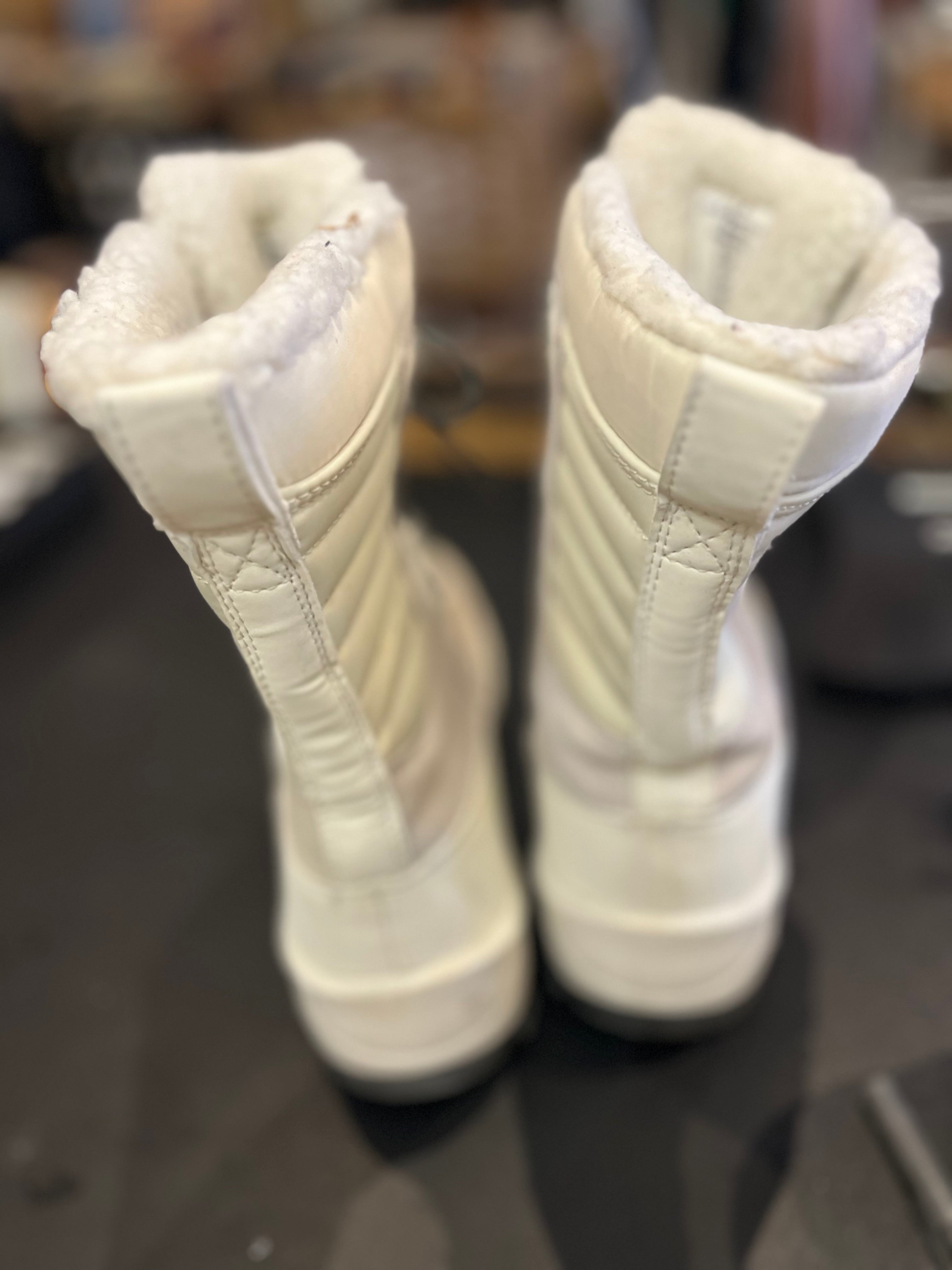 Thermalite White Snow Boots Lace Up Fleece Trim Sz5