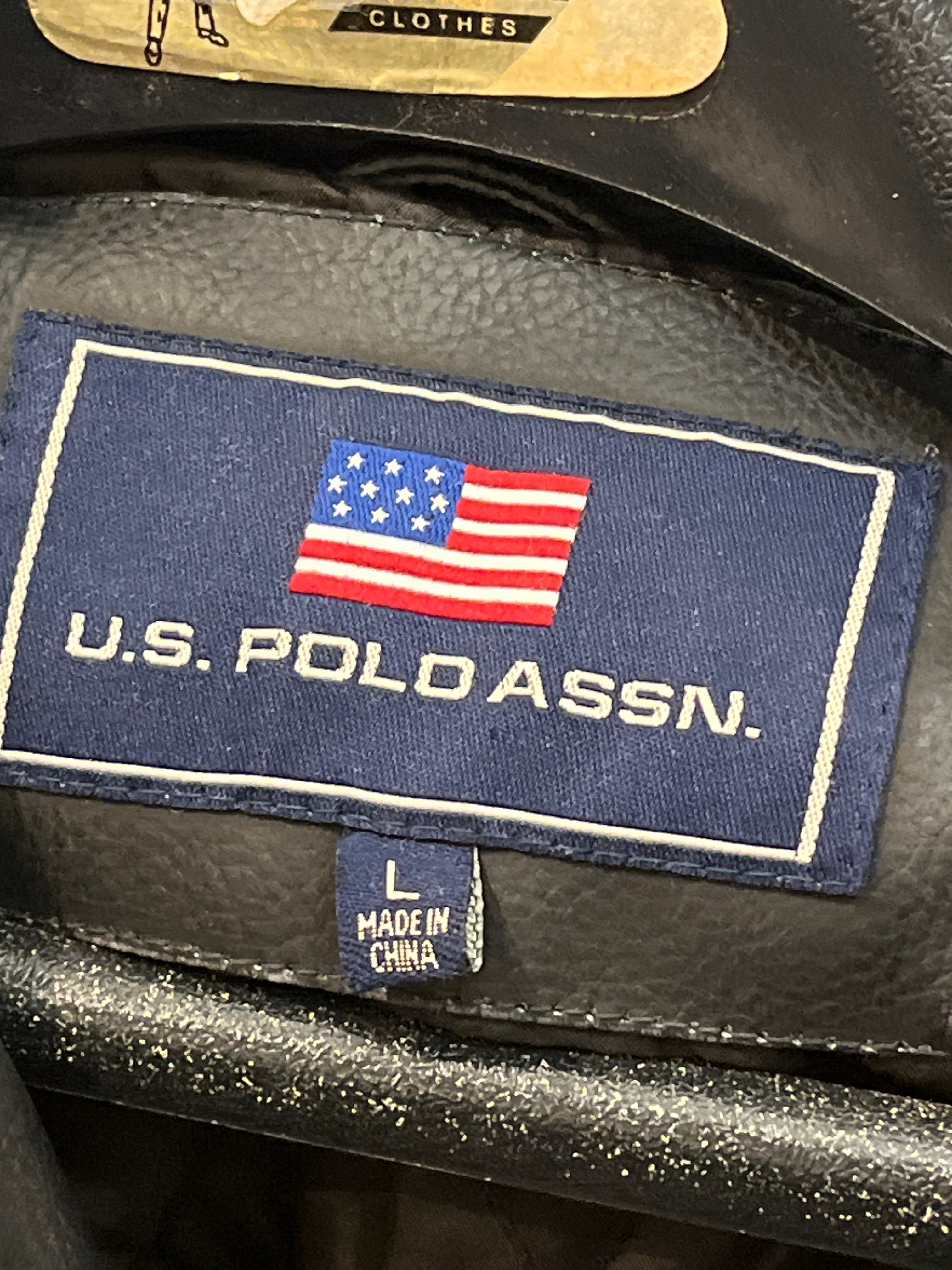 US Polo Assn. Black Faux Leather Zip Jacket 3 Outer Pockets SzL