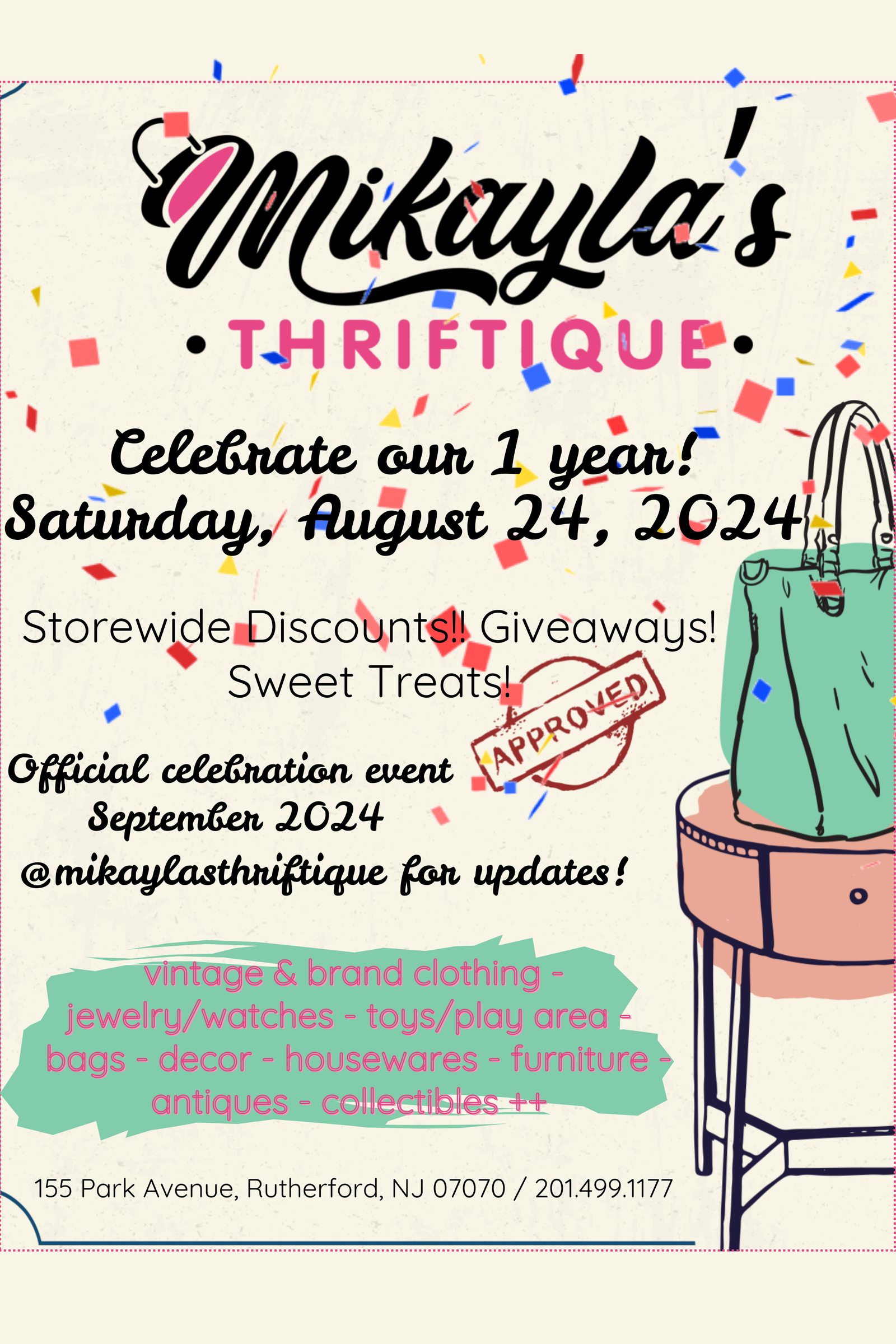 Mikayla's Thriftique is located in the historic Holman building at 155 Park Avenue in Rutherford, NJ. We have carefully curated pre-loved and some new items for the entire family, including vintage and brand-name clothing, costume and fine jewelry, children's toys, a wide variety of books, eclectic housewares, pet accessories/supplies, small-to-mid-size furniture, unique works of art, throwback and fashion handbags & accessories, home decor, collectibles, antiques, and more. Mikayla’s Thriftique only offers items we would wear and use or feel comfortable gifting to our loved ones.