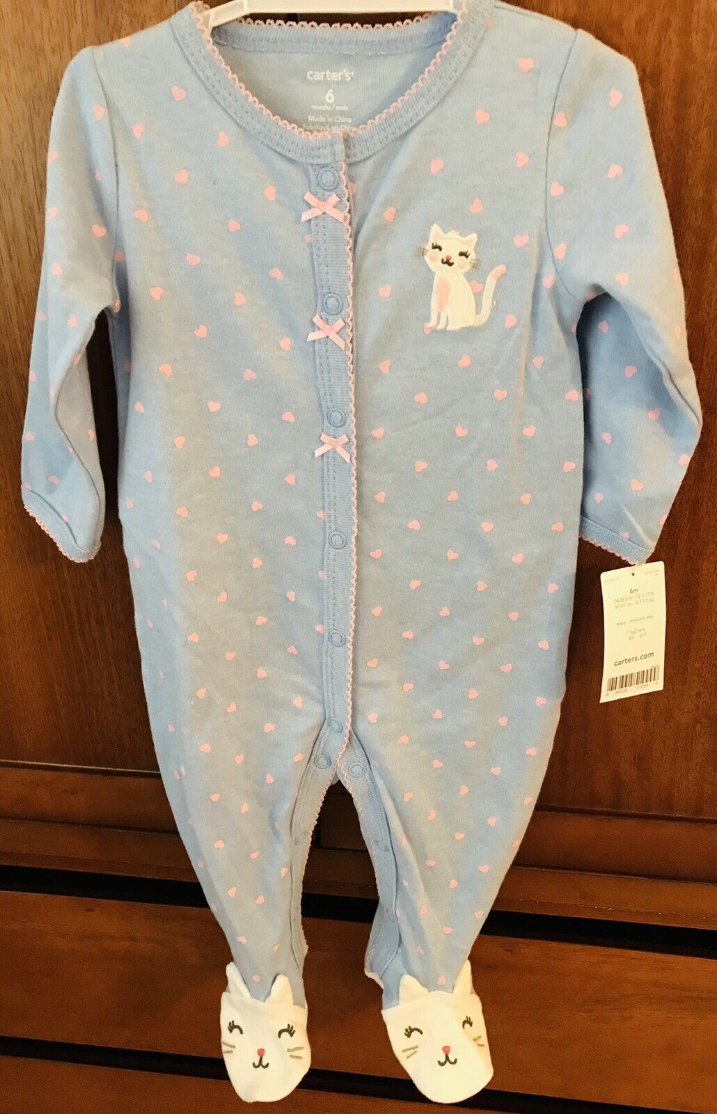 Carter’s Baby Kitty - Blue And Pink - Size 6 Month Footed Pajamas. Condition is "New with tags". Shipped first class.