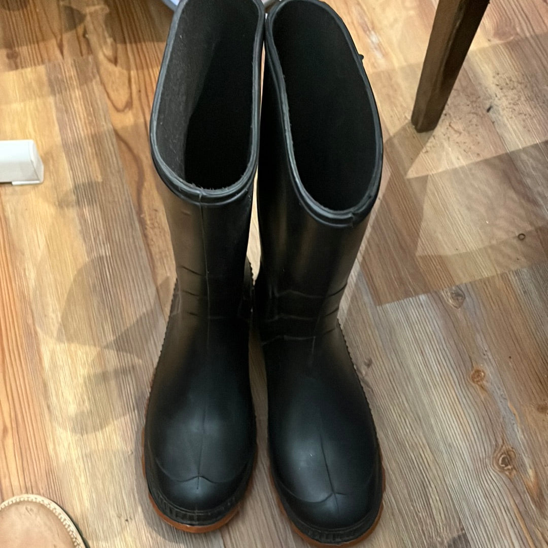 Galoshes black w orange soles USED