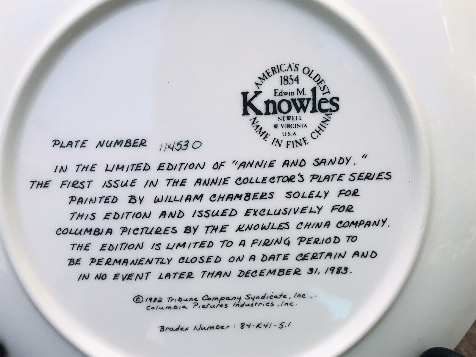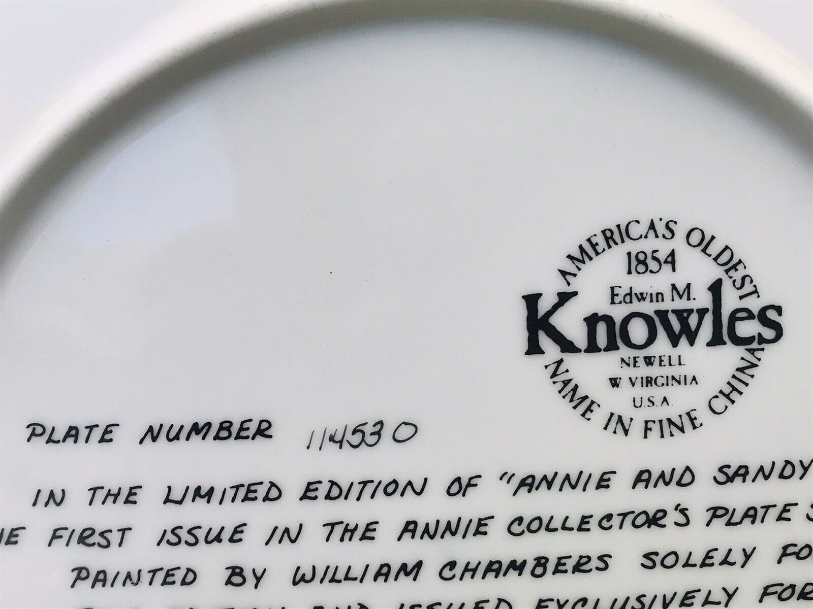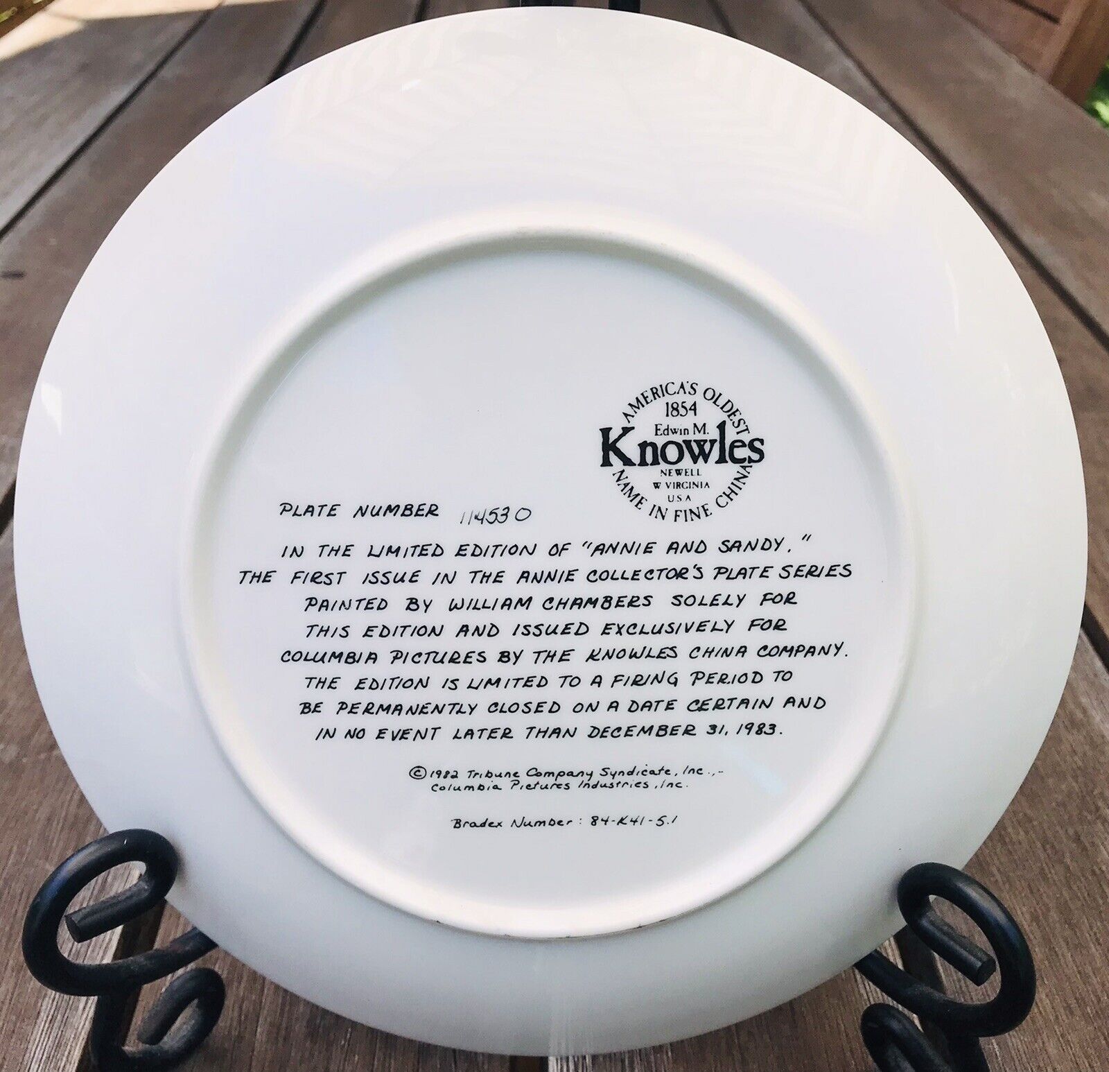 KNOWLES COLLECTOR'S PLATE "ANNIE AND SANDY" Plate Number: 114530 with Original Plate Spring. Signature on plate as part of the collection from 1983 collection.