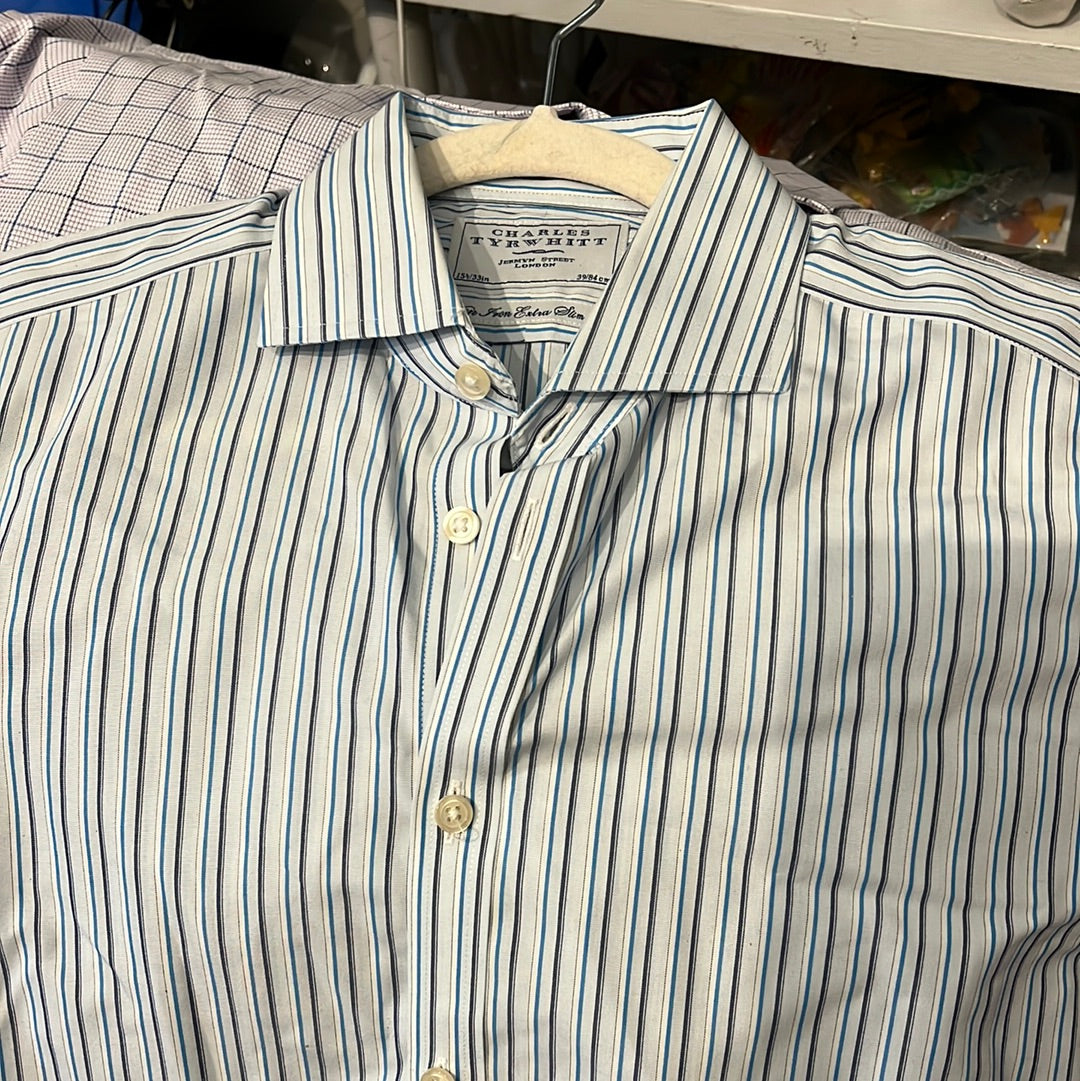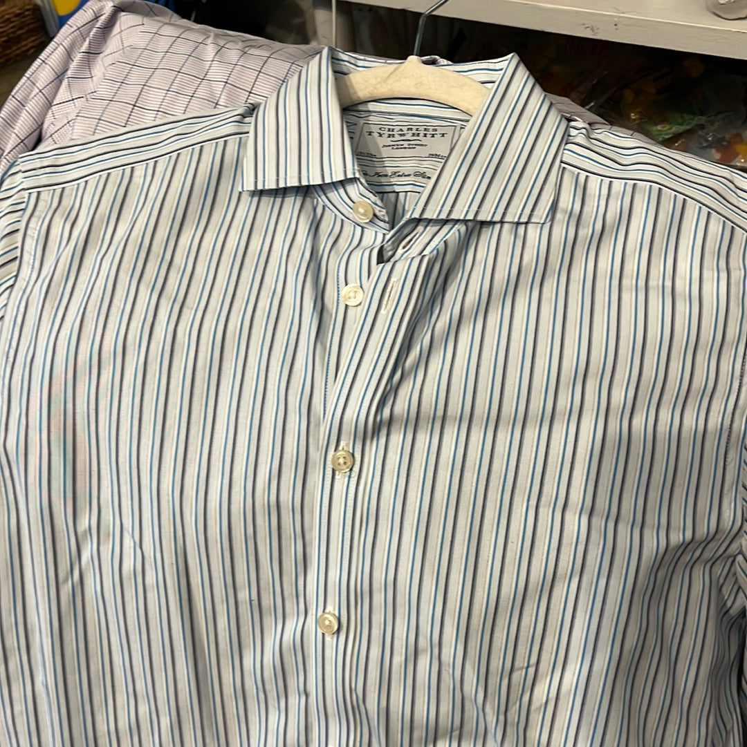 Men’s Charles Tyrwhitt Non Iron Extra Slim Fit 15 1/2 33”Blue Pin Stripes USED