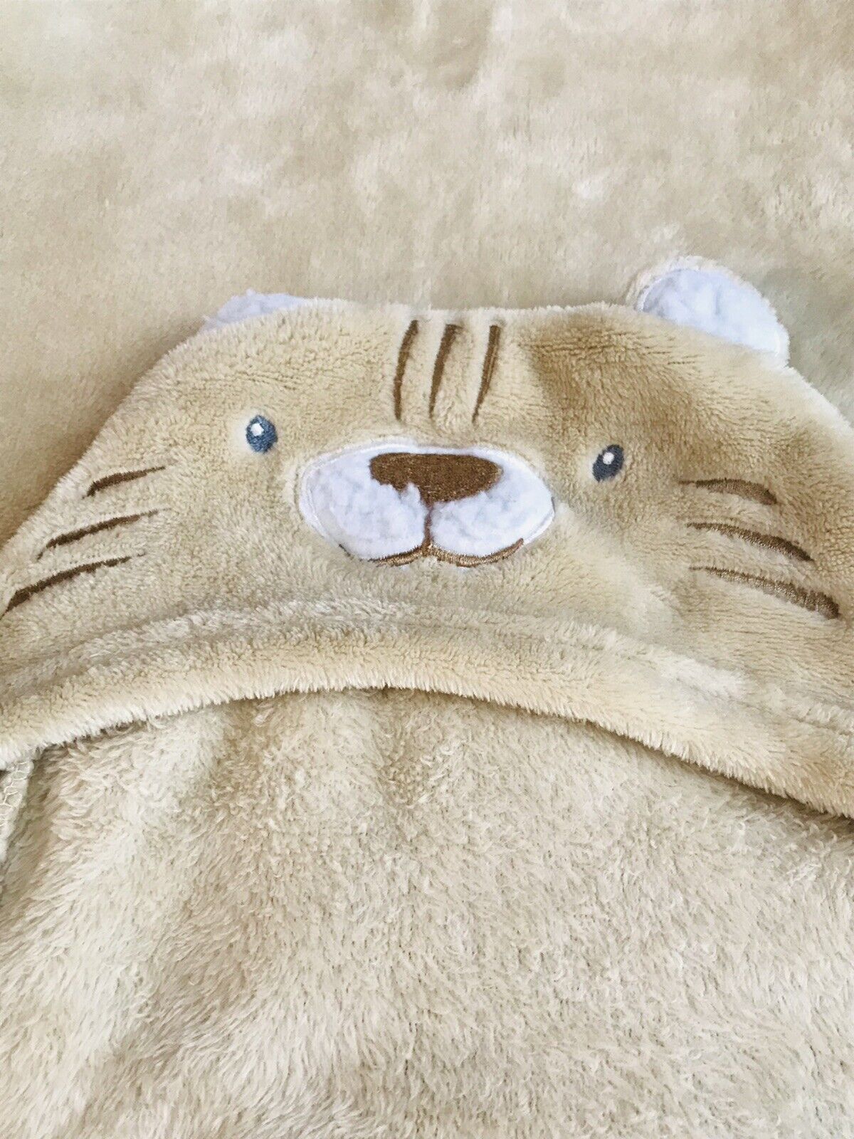 TIGER: Tan Baby Hooded Soft Blanket with Ears! Cuddly! Snuggly!.