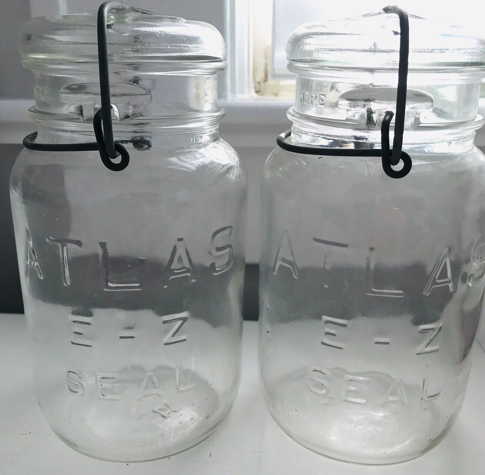 Vintage ATLAS E-Z Seal Canning Jar Quart Clear Glass W/ Clear Lid H11 & H6. Excellent Condition! No chips or cracks.
